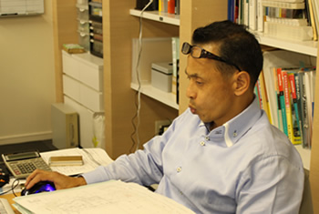 趣味は筋肉トレーニング、マッチョな身体で細やかな図面を描きます。毎日深夜まで仕事をしながら筋力トレーニングを欠かさないので、昼間は仕事中に居眠りすることも多い?みたいです。趣味は当然、筋力トレーニング、夢は「設計道」を極めること・・・だそうです。